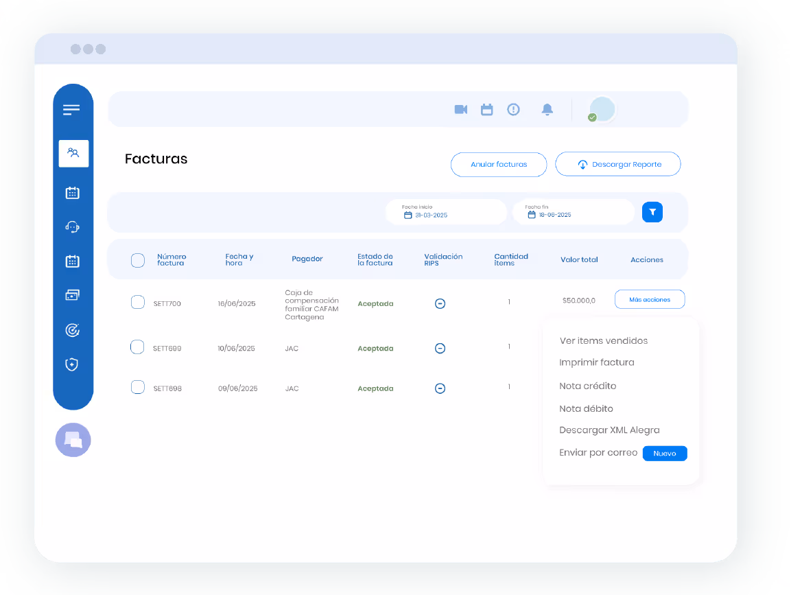 Centraliza tu gestión financiera, cumple con la normativa DIAN y automatiza la generación de RIPS desde una plataforma segura y fácil de usar.